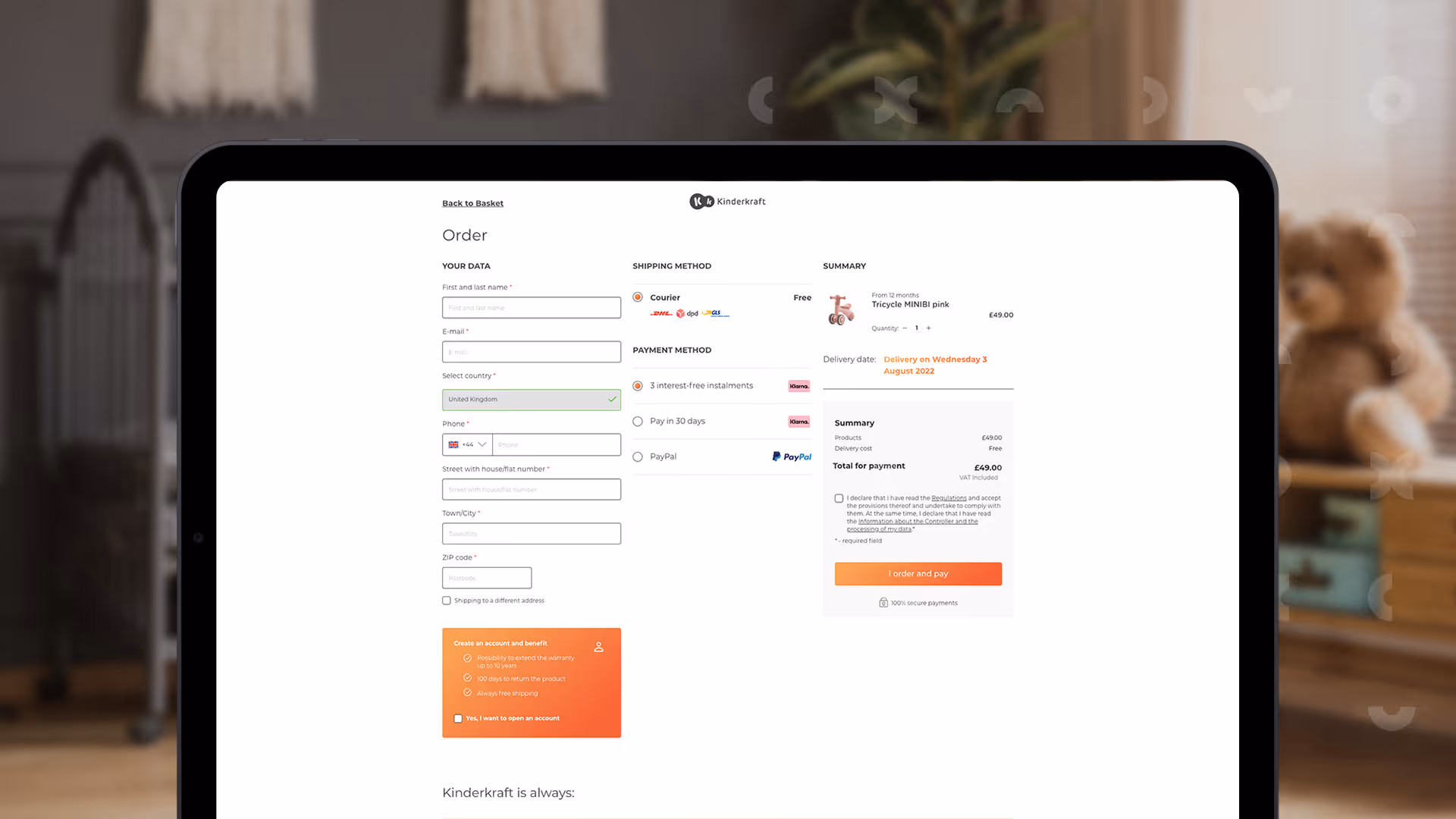 Der Marke Kinderkraft ist es gelungen, ihre Verkaufsplattform zu verbessern und sie mit den globalen Plänen der Marke in Einklang zu bringen. Die Website des Shops erfüllt nicht nur eine Verkaufsfunktion, sondern auch eine informative - mit einem umfangreichen Blog-Bereich, der Ratschläge zur Verwendung der Produkte, aber auch zur Pflege von Kindern oder zu Reisen mit einem Kleinkind enthält.Trotz der zunehmenden Zahl ausländischer Märkte konnte der höchstmögliche Servicestandard beibehalten werden - in der jeweiligen Landessprache. Die kundenfreundliche Einstellung der Marke manifestiert sich auch in einem einfacheren Einkaufsweg, kostenlosen Bestellungen, Rücksendungen und Umtausch sowie einer flexiblen - nun ja - Rückgabefrist.