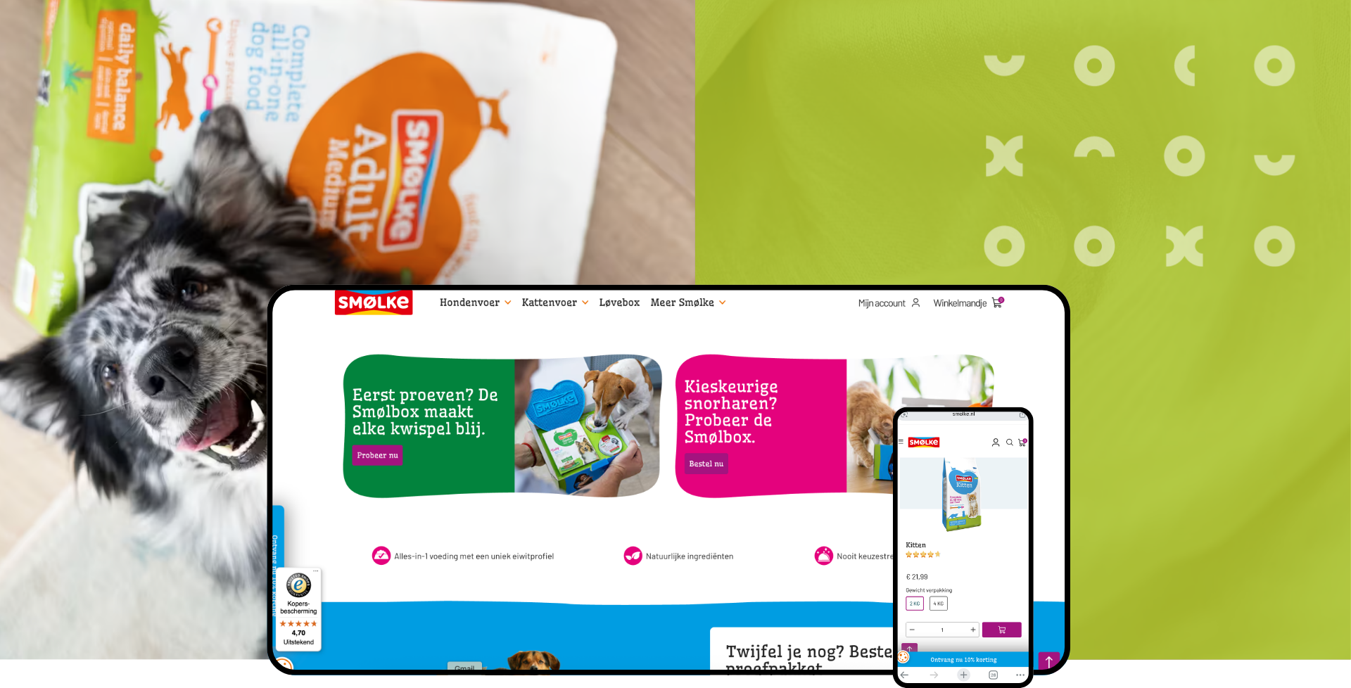 Smølke, part of Premium Petfood Brands, aims to strengthen its digital brand position and accelerate growth. Since its sister brand Yarrah was already thriving on Shopware, the choice of platform was clear. Following a focused discovery phase, the decision was made to build upon Yarrah’s solid foundation. We created a scalable core that offers complete brand freedom, independent content management, and room for future data-driven development.